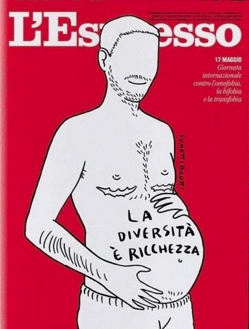 Fa scalpore la copertina dell’Espresso con l’immagine della donna/uomo incinto, commentato con il titolo: “La diversità è ricchezza”.
