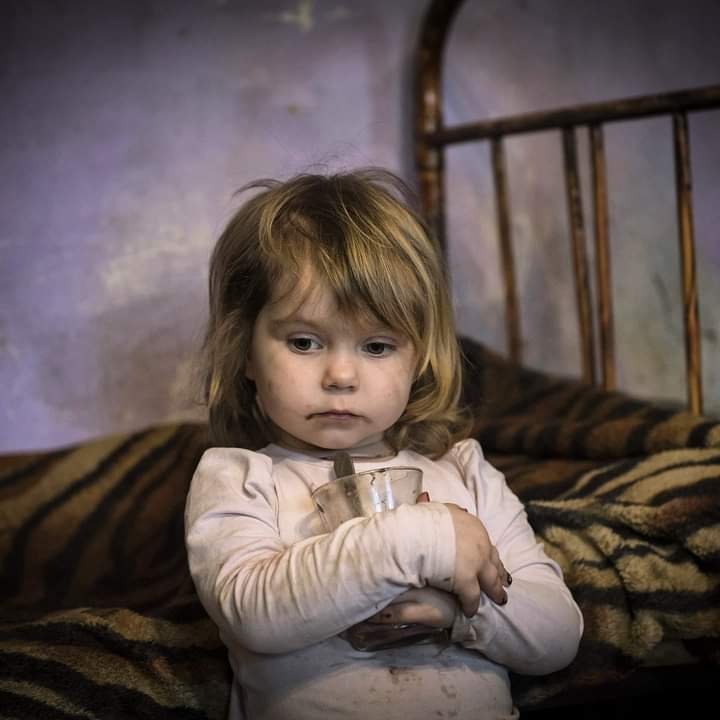Questa bambina viveva a Zaitsevo con la mamma e i fratellini in condizioni disperate. Visitai la sua casa nel 2016. La zona era sottoposta a continui bombardamenti da parte delle truppe Ucraine. All’epoca nessuno si indignava, nessuno abbandonava la propria postazione all’ONU, nessuno offriva le seconde e le terze case.